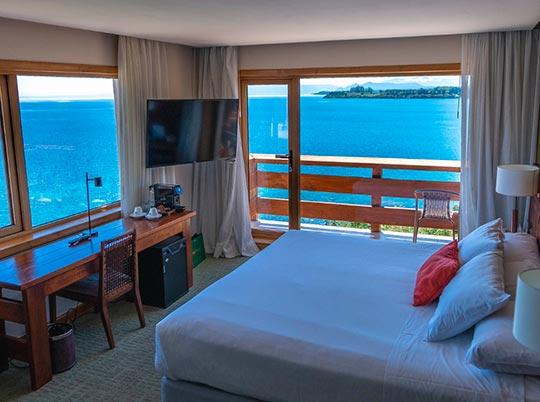 Algunas habitaciones ofrecen balcones privados, ideales para disfrutar de vistas panorámicas al lago Llanquihue y los majestuosos volcanes que lo rodean. La experiencia perfecta para descansar y renovar energías en un entorno único.
